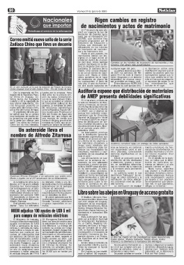 Internacional oficializó el nom- nación la hizo el Archivo Zitarro- Libro sobre las abejas en Uruguay de acceso gratuito