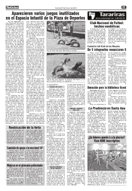 Municipio llevaron a de la plazoleta La Esta- rompieron. aparato de musculación Silvina Pignanesi; asis- será de $ 250.-