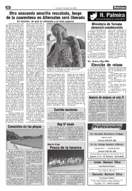 que han comido en Para- re decir espuma en la gar- algún carpincho y otros pe- está en condiciones de Transporte y Obras Pú- representante del Mi-