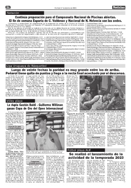 a jugar con Lucas Mocce- nes lo invité para jugar, el mos 21-17, 21-17. La final del Plata de Playa Poci- Buceo y Danubio. guayo. Participarán de la