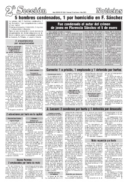 2 actuaciones por hurto en la capital Libertad a prueba tado por el sereno del esta- ba en forma sospechosa, ron trasladados a la sec-