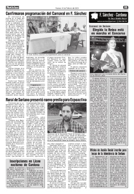 dona y Florencio Sán- mación, el presidente for- días”. ción coordinar con Car- Carnaval de Soriano que nido un cambio que no