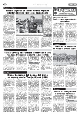 experiencia en el Autó- Bessone en el campeonato Argentino de Turismo Nacional 17 al 19 de febrero lonienses ya pueden con- Este y que, en su quinta