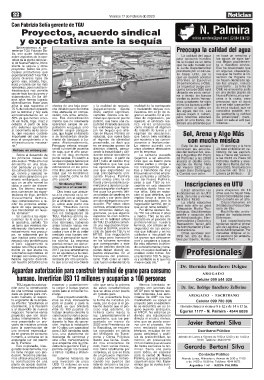 negocios. Tenemos varios trabajo directos durante la licitaría como marca la el MTOP. No estamos pi- Eguren 1177 - N. Palmira - 4544 6838