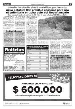 Carmelo ............................................1.000 ................................... 201.700 no potable, lo que y Semillero, 2 en Migue-