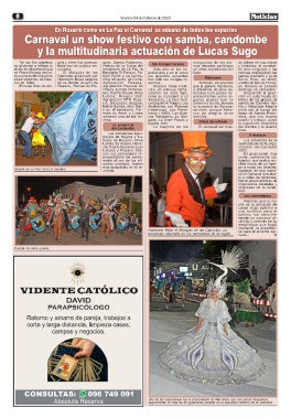 vivido en el carnaval que tusiasta. Inmigrante, de La Paz, la Este año en los es- en otras expresiones del be afro uruguayo y las