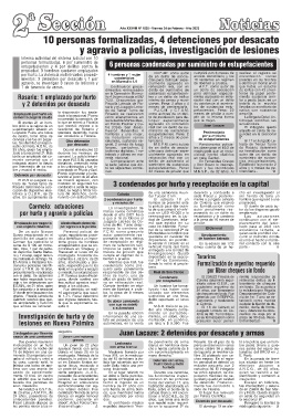 Rosario: 1 emplazado por hurto llo 4.0 comunicada el 26/ tes y un delito de tráfico mente agravado en reite- niendo sustancia simi-