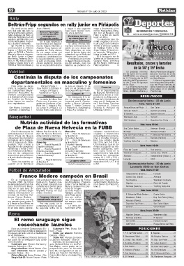 del Campeonato Depar- Artigas 2-Praga 0 Club Deportivo San Pedro. En el Departamental tínez, Aroldo Cabrera y Posiciones.