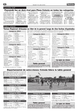 se en el fin de semana: za Colonia, Rampla Ju- seguido de Progreso con con 65 goles a favor y 25 ron un título para cada uno Sub 14: ..... Defensor Sp