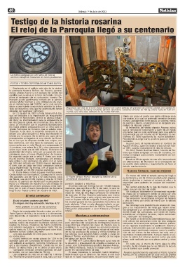 El reloj centenario de ese año. El Eco Rosarino publicaba ese mismo nuevo, evitando así el ingreso de humedad y lluvia.