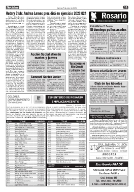 CEMENTERIO DE ROSARIO Chirola, Nevado y des- litado desde las 22 y se