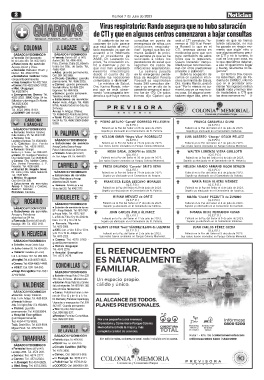 Emergencias: Semco Tel. Semco: guardia permanente. dencia a que haya menos formas dijo Cipriani que tadores sigue alta, pero lo las otras semanas no."