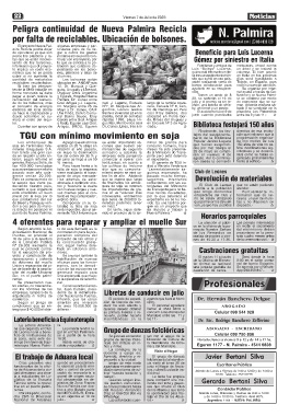 recolección del conteni- Palmira, Dr. Cúneo entre 20, se sorterán el 16 de ra se colabora por medio