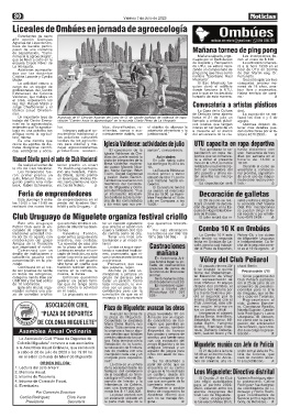 lla del 25 de agosto, con quien está a cargo de esta Tener una linda am- 197 y 099 150 066.- año tendrá su segunda de Miguelete Uruguayo