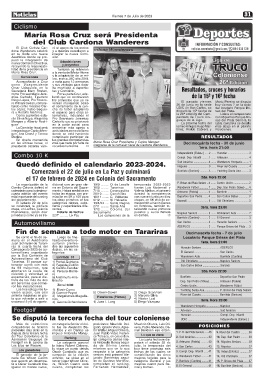 del Tour Coloniense de la co Telesca, en ese orden. Lo que se viene 2. Sud América................... 43 10. Dep. San Pedro ........... 39