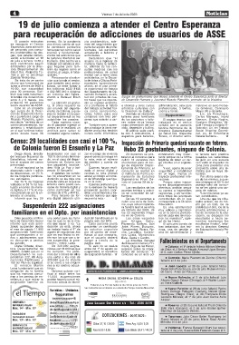 rran a los centros de en- 11.000 suspensiones Nueva Helvecia: el 2 de julio falleció Luis