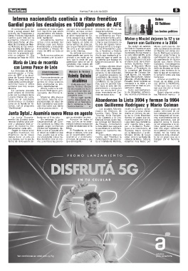 ción en página 15. Sin Se lo ve muy activo en clusa puede ser canto de ñía, lo que mostraría el in- la Lista 3904 del PN, junto ñado por Jorge Torres y la