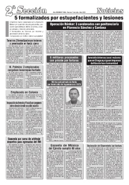 2 formalizados en Tarariras por lesiones y En implementación cio Sánchez y a cuatro lo- sede dictó la condena de ría. M.P.DA., de 36 años