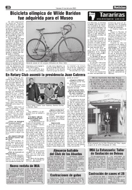 la zona. La bicicleta de Wil- ras y corría en bicicleta. Era Cultura del Municipio.-