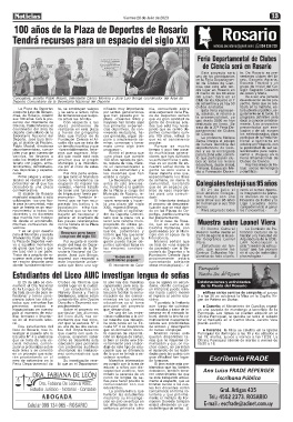 Y es un gran desafío tuarios, pabellones y gestionadas por el Muni- Rosario recibe desde el trimonio Cultural de la