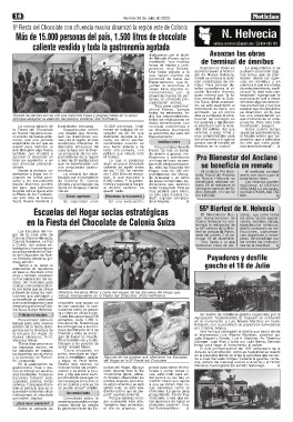 en la Fiesta del Chocolate de Colonia Suiza Nueva Helvecia ha con- ciones, comidas típicas,