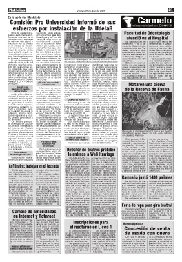 está estructurando el para festejar la culmi- dencia de Colonia, le teatro tenemos prohibi- mas del Hospìtal Artigas realizó una jornada el