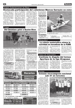 Nacional 6 a 0 sobre Ra- 10 a 2 a Maldonado. Co- las 18 en sub 20, 19:45 hs tud Sportivo Rodó y Pro- 14 unidades, Plaza Colo- Colonia, Juventud Sporti-