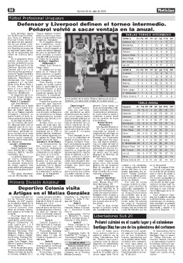 lista del Torneo Interme- definición de su goleador Casi con una situa- cional concretó un triunfo Peñarol 22 13 5 4 34 20 44 14