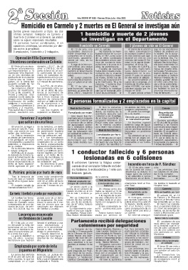 operativos antidrogas, las restantes por deli- Homicidio en Carmelo 2 jóvenes sin vida en El General