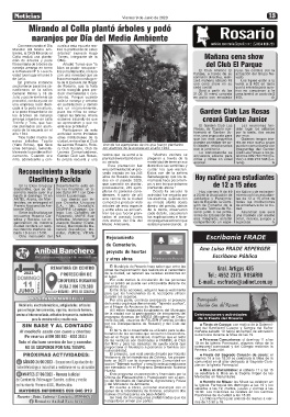 se plantaron paraísos ca- de Rosario, que la fruta sede social. que la entrada para quie-