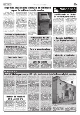 minación segura de resi- Cámara de Especialida- Hogar comunicó la El 11 de junio el Liceo C. Valdense. Y no faltará la