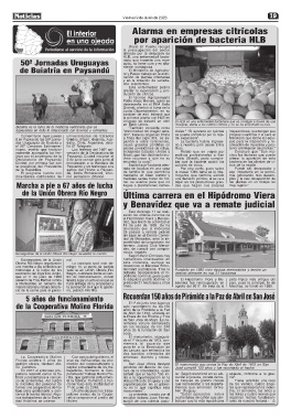 la presencia del Presidente Paysandú y un homenaje a la Explicó que “la planta afec- cultivos de citrus. trus de la región.