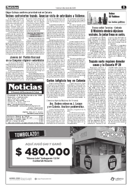 Fundado el 9 de Noviembre de 1985 cio político visita el departa- Colonia, en Gral. Flores es- piación de terrenos en frac- grafía, Aeropuerto de la