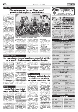 Alarcón de Dolores. Y 3º a representar a Uruguay país en una competencia Lucas Piano UDIC .................................. 3 ...... River del Cuadro ..................2