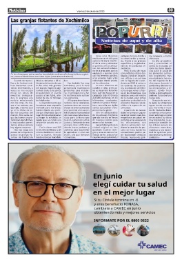 llas o de hechos insó- lómetros del centro de una Esa decisión fue muy cir los alimentos. demia en 2019 al cortarse chinampas durante la