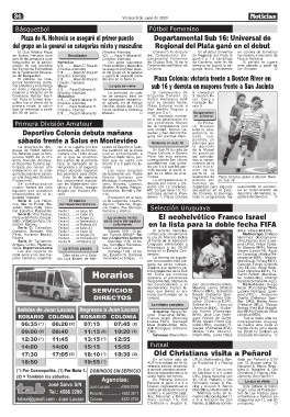 de Nueva Helvecia tuvo Resultados U21: ...... Plaza 71-Miramar 90 del Campeonato De- de Regional del Plata le las locales a Nacional de