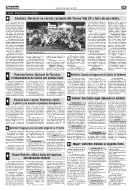 se impuso 1 a 0 a Polan- Nacional y Peñarol ante Agraciada, además igua- menzará a disputarse Divisional B Cancha de Esparta: