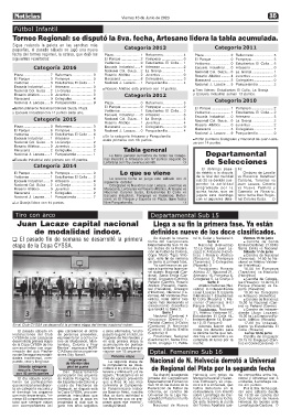 Escuela Industrial....... 1 Artesano ........................ 1 están primeros con 16 puntos. Están punteros Colegiales y Nacional de Juan Laca-