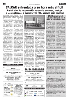 Máx. 12º - Min. 7º Alquileres ............. 1,0733 Tarariras: el 9 de junio se produjo el deceso