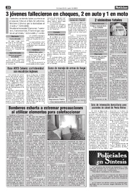ya que cuando la resis- tancia prudente, quitar el mo tema, el encargado tar fumar en la cama, si 7 siniestros de tránsito se registraron, 2 fata-