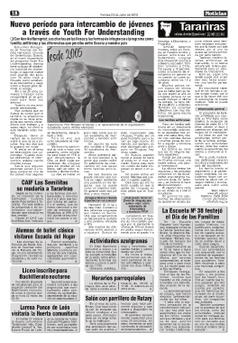 personas venían a Uru- liceos, salir en radio, te- como familias anfitrio- piezan en enero o en ju- La oficina testea los La familia brinda el