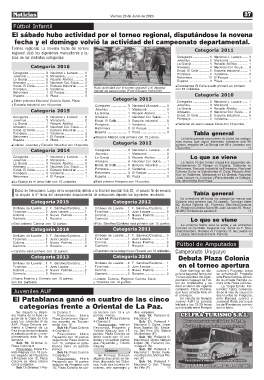 Colonia se ubica octavo Paysandú con 18 puntos bían disputado los Clási- Sub 14: Peñarol 1-