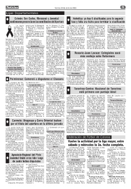 gional del Plata tuvo ac- Las colocaciones las guayo 7, Centenario 5, Nacional (Helvética) Sábado 24 de junio (Cardona)