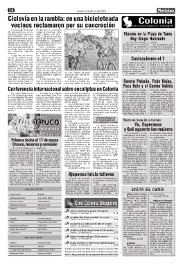 miento y cultivo de euca- todo el mundo interesa- nacional son: plantacio- dores, hacen de Colonia kilómetro 189 de ruta 21. o en Abitab Tarariras. Más