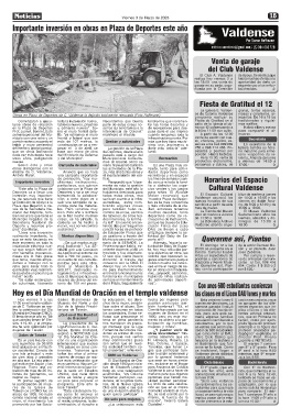 te, de recursos que tiene ción; a corto plazo va a sería en cuanto a la infra- "nuestra Plaza de Depor- Valdense anunció los de 14:00 a 18:00 y los