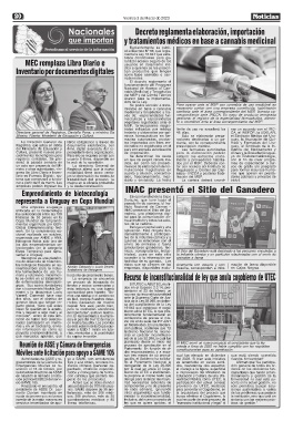 La Dirección General de libros obligatorios a través de tos importados con fines me- ciente, con la correspondiente mica y Farmacias del Uru-