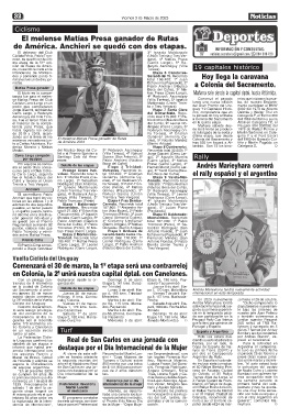Cerro Largo campeón Santiago Calo del Ama- Soares (San Antonio), 5º go), 2º Agustín Moreira Rally