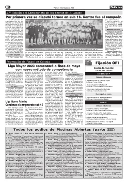 Liga Nueva Palmira Respecto al departa- pos, clasificarán los ocho SUB 17