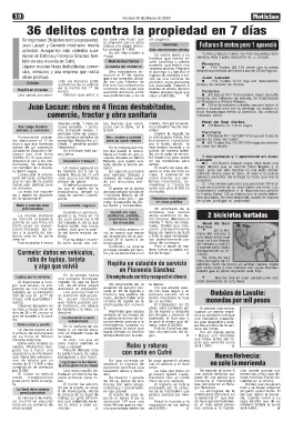 Se registraron 36 delitos contra la propiedad. su casa una mujer que sin pagarlos.
