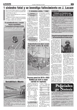 1 siniestro fatal y se investiga fallecimiento en J. Lacaze